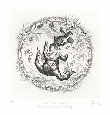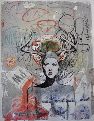 The contemporary American Experience is a consumer driven environment in which our values are deceptively advertised as wholesome qualities of The American Dream. Concepts of packaging, branding and marketing have permeated our culture and language where interpersonal relationships have become commodities within social media to define status. My current work involves colliding images and techniques producing a new piece with content each individual component does not possess on its own. The conceptual and visual contrast expresses the divergent forces that shape the American Experience.