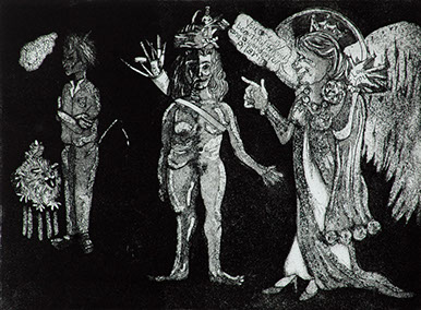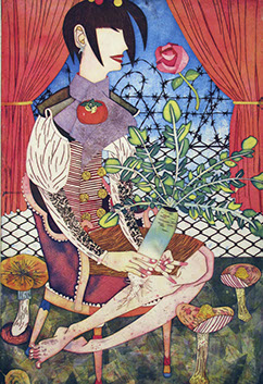 My drawings and prints are filled with visual metaphors that suggest a narrative. Each narrative is an intuitive response to material accumulated through observation, introspection and visual mapping. Though I do not intend to create autobiographical work, I often use my personal experience as point of reference. My hope is that the final image will have enough information to suggest meaning but ambiguous enough to allow for personal interpretation.
