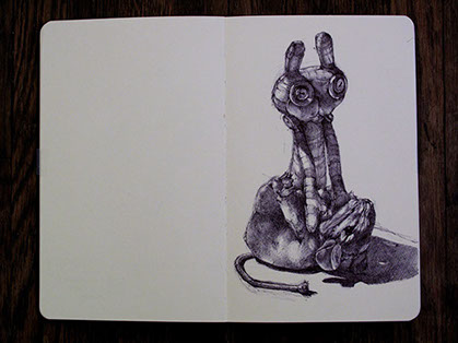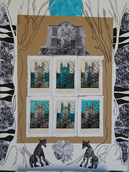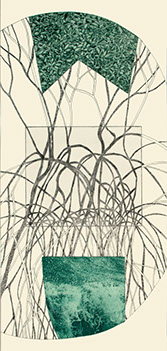 My work begins as a process of collecting. I collect photos, textures, magazine clippings and notes from personal observation. Most of these materials are assembled together in my sketchbook to create a sort of log book. It is in my sketchbook that I process ideas and create drawing assemblages from which I develop prints.