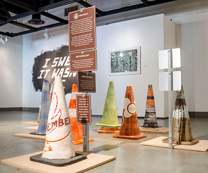 Established in 1971, Ink & Clay is an annual competition of printmaking, drawing, ceramic ware, clay sculpture and mixed media utilizing any variety of “ink” or “clay” as a material. The exhibition is sponsored by the W. Keith and Janet Kellogg University Art Gallery of California State Polytechnic University, Pomona and is underwritten by the generosity of the late Col. James “Jim” H. Jones with additional support from the Office of the University President.